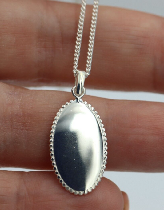 Sterling Silver Oval Disc Pendant Engraving Available + Kerb Chain with 45cm + 5cm extender