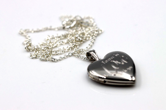 Sterling Silver Oval Diamond Engraved Heart Locket for 2 pictures