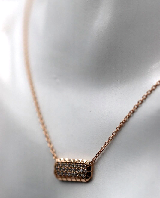 Sterling Silver Rose Gold Plated CZ Bar Pendant 42cm+5cm Ext. Necklace