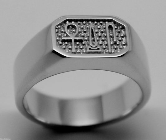 Sterling Silver Ring Egyptian Hieroglyphic symbols - Success, Happiness & Health