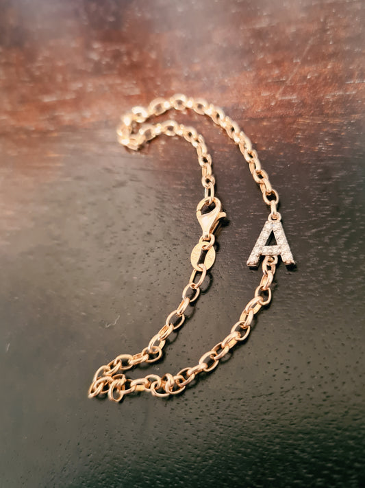 Genuine 9ct 375 Solid Yellow Gold Belcher 19cm Bracelet Diamond Initial A