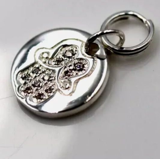 Sterling Silver 925 Hamsa Hand 11mm Disc + Split Ring Pendant Charm