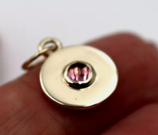 Genuine 9ct 9K 375 Yellow Gold 12mm Cabochon Pink Tourmaline Disc Pendant Charm