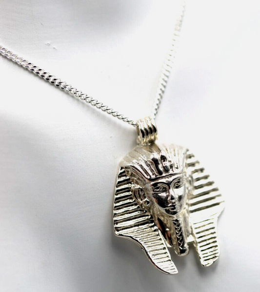 Genuine Sterling Silver 925 Large King Tutankhamun Charm / Pendant + Sterling Silver Chain