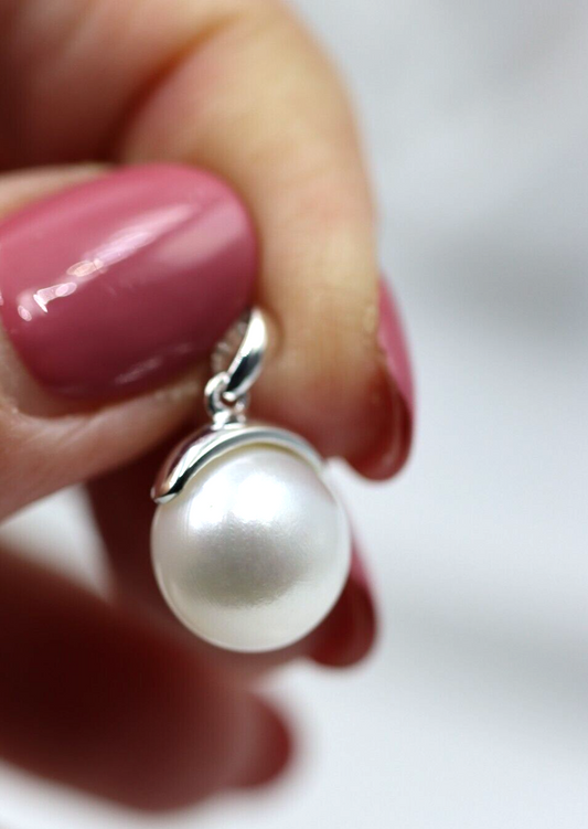 Genuine Sterling Silver 925 Freshwater Cultured Button Pearl Pendant