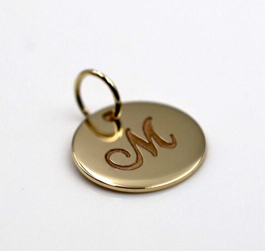 Genuine Solid 9ct Yellow, Rose Or White Gold Plain 18mm Round Disc Pendant + Engraving M