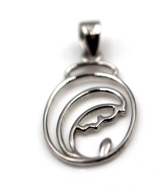 Genuine Sterling Silver 925 or 9ct Yellow Gold Oval Madonna Open Pendant or Charm