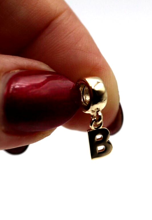 Genuine 9ct Yellow Gold 375 Initial Bead Charm / Pendant - All letters available