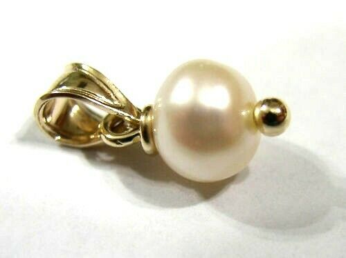 Genuine 9k 9ct Solid Yellow, Rose or White Gold White 7mm Ball Pearl Pendant Charm