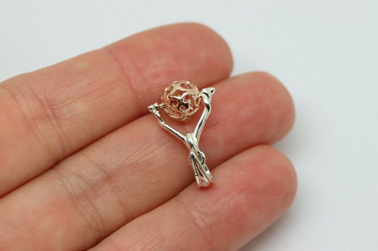 Sterling Silver + 9ct Solid Rose Gold 8mm Filigree Ball Spinner Pendant