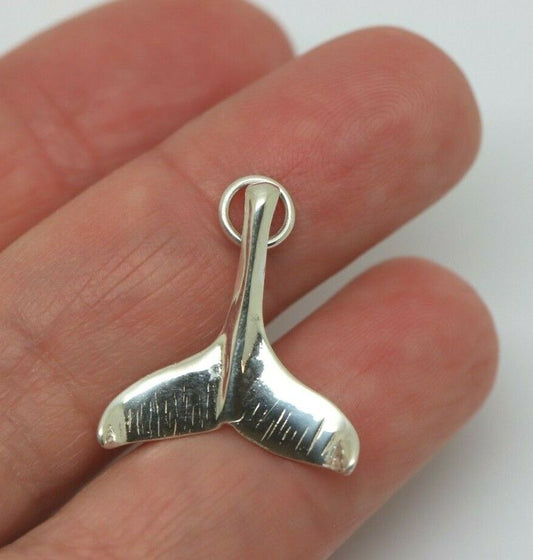 Genuine Sterling Silver 925 Large Whale Tail Solid Pendant Charm