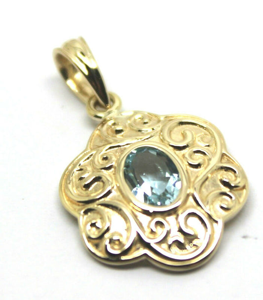 Genuine 9ct 9k Yellow Gold Antique Aquamarine Filigree Pendant