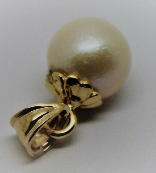 9ct 9k Solid Yellow Gold 14mm White Freshwater Pearl Ball Pendant