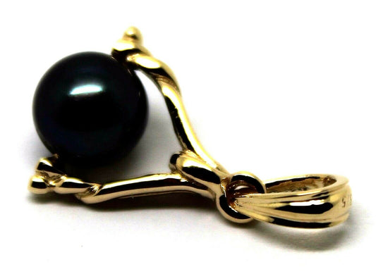 Genuine 9kt 9ct Solid Yellow, Rose & White Gold 7mm Black Pearl Ball Spinner Pendant