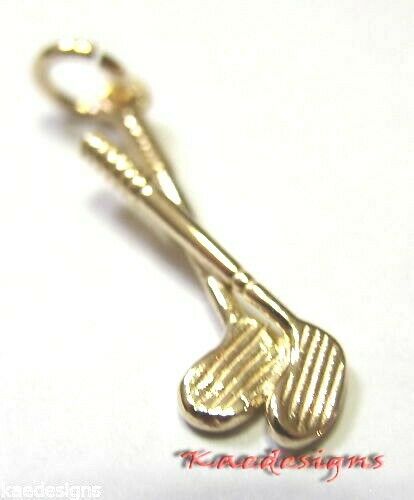 Solid 9ct 9k Yellow Or Rose Or White Gold Golf Clubs Or Hockey Bat Charm / Pendant