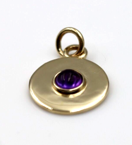 Genuine 9ct Genuine Yellow, Rose or White Gold 12mm Cabochon Purple Amethyst Disc round circle pendant
