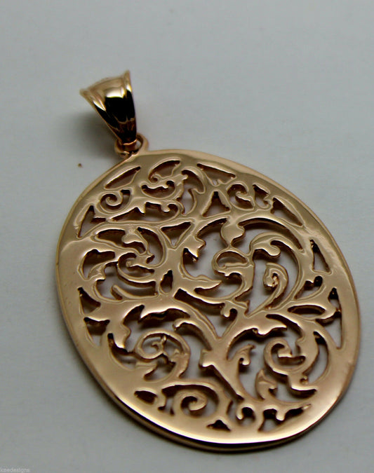 Heavy Solid 9ct Yellow, Rose or White Gold Large Oval Filigree Pendant