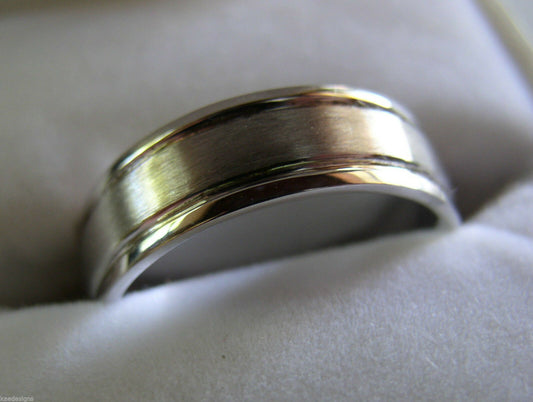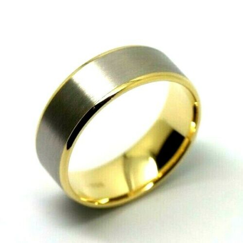 18ct Hallmarked 750 Heavy Yellow & White Gold Solid Mens Brushed Wedding Band