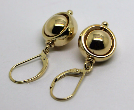 Heavy 9ct Yellow, Rose or White Gold Continental Hooks 10mm Ball Spinning Belcher Earrings