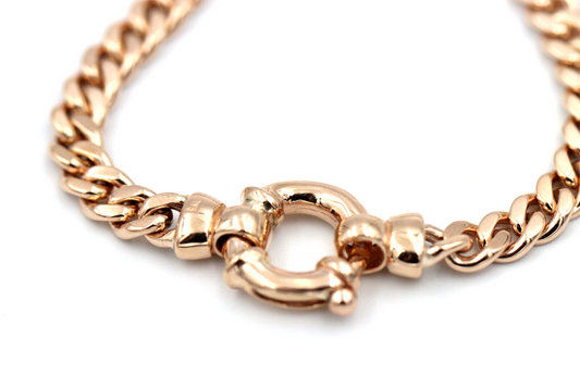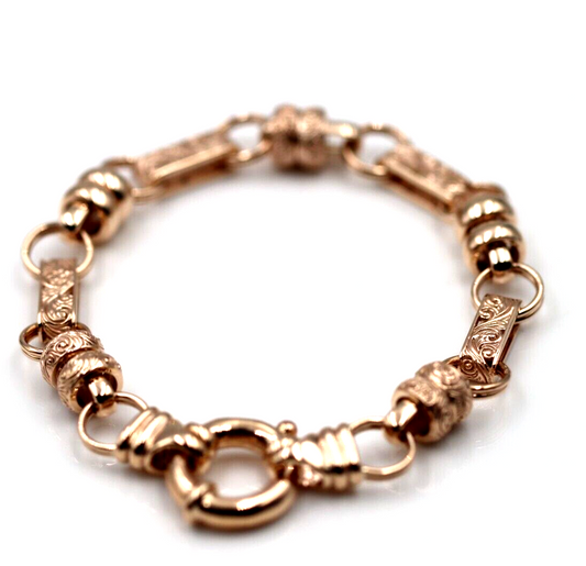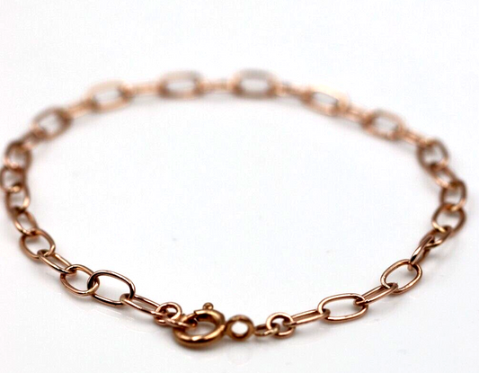 Genuine Handmade 9ct Rose Gold Lightweight Paperclip Bracelet Bolt Ring 18.5cm