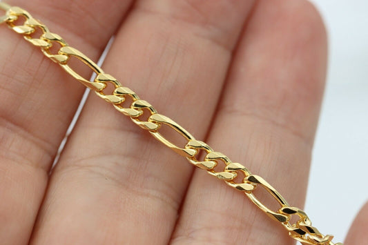 Genuine New 9ct Yellow Gold Solid 19cm or 21cm Bevelled Figaro Bracelet 3.6mm wide
