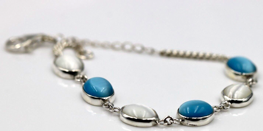 Genuine Sterling Silver 925 Blue + White Cat's Eye Oval Bracelet