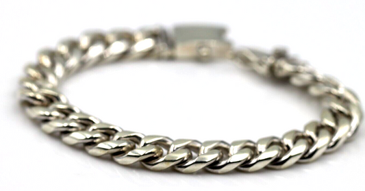Solid Sterling Silver 925 9.7mm Wide Flat Kerb Curb Bracelet 20cm (last one)