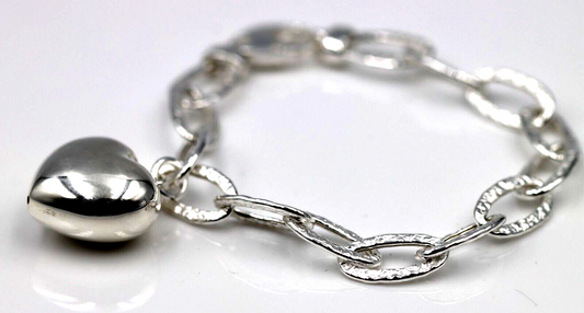 Sterling Silver 19cm Lightweight Bubble Heart Bracelet Paper Clip