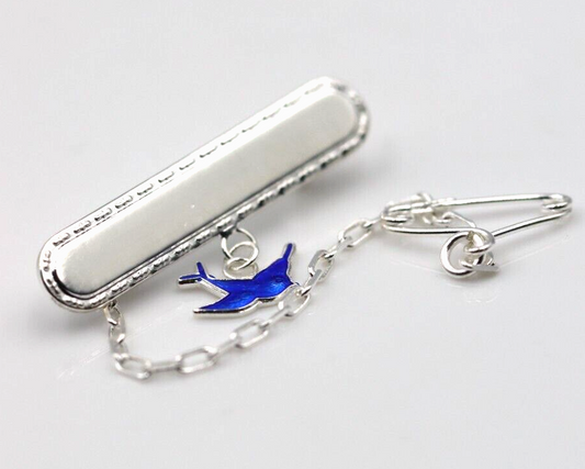 Sterling Silver 925 Enamel Bluebird ID Name Baby Brooch, Free Laser Engraving
