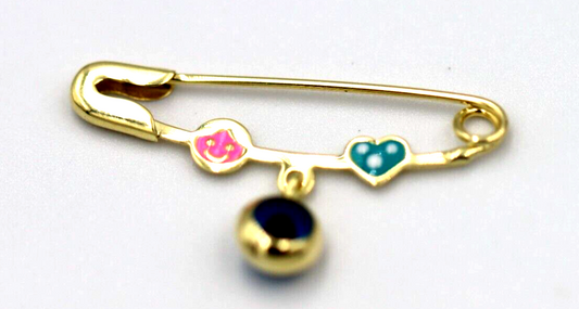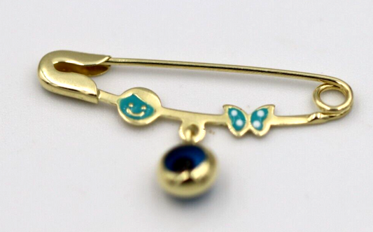 Genuine 14ct Yellow Gold Baby Child's Kids Brooch Evil Eye Mati