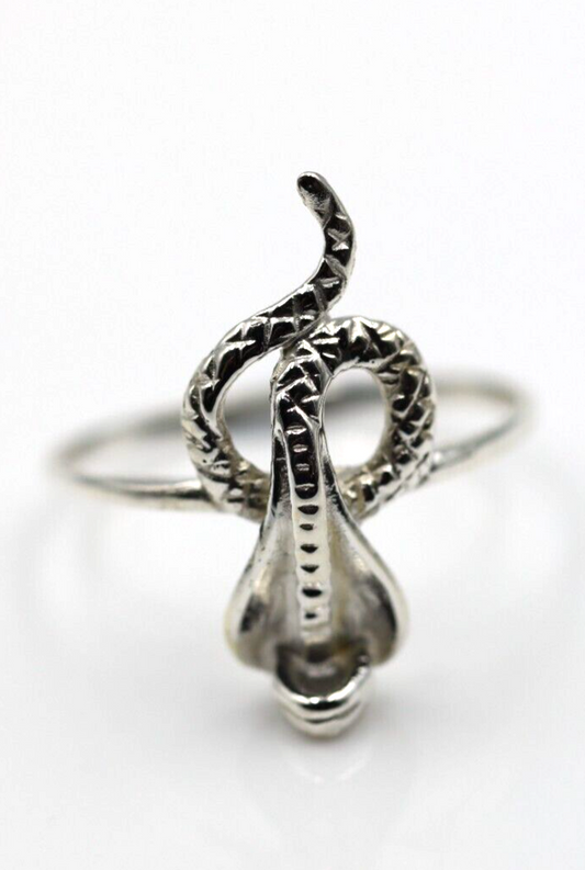 Sterling Silver 925 Delicate Snake Cobra Ring Size Q / 8