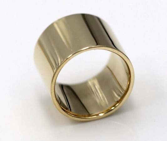 Size O Heavy 9ct Yellow, Rose or White Gold Full Solid 16mm Wide Flat Profile Band Cigar Ring