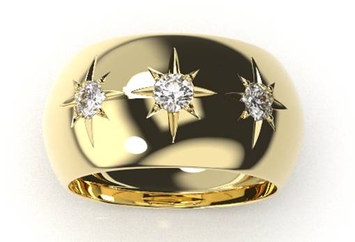 Kaedesigns Genuine 12mm 9ct Yellow, Rose or White Gold Full Solid Wide Band Ring + 0.15pt diamonds x 3
