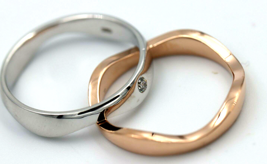Solid Size 10.5 Puzzle ring 14ct Rose & 14ct White Gold set with Cubic Zirconia