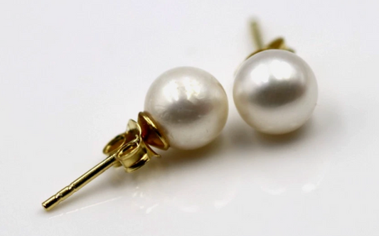 Sterling Silver 925 Gold Plated 7mm Freshwater Pearl Stud Earrings