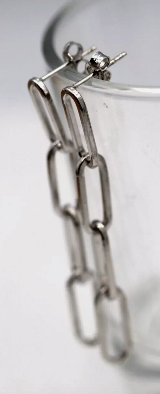 Sterling Silver 925 4 Link Paper Clip Link Drop Earrings