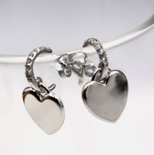 Sterling Silver 925 CZ-Set Heart Charm Post Stud Hoop Earrings