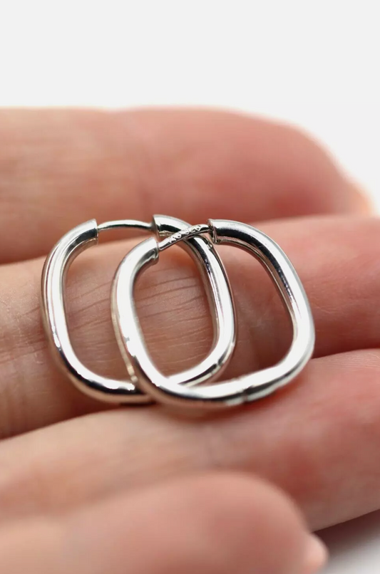 Genuine Sterling Silver 925 Hoop Huggies Square Huggie Tube Earrings
