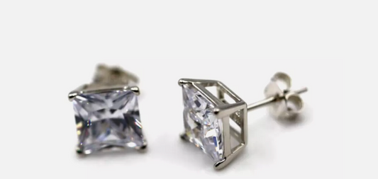 Sterling Silver 925 Cubic Zirconia 8mm Square Set Cut Studs Earrings