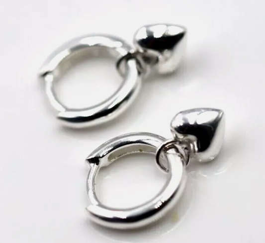 Sterling Silver Hoop Huggies 925 Full Solid Earrings Heart Charms