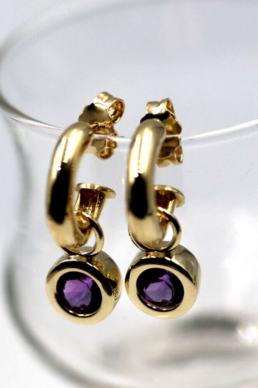 Genuine 9ct 9k Yellow, Rose or White Gold Amethyst Set Drop Stud Earrings