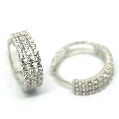 Genuine Delicate 9ct White Gold 3 Rows CZ Huggies Earrings