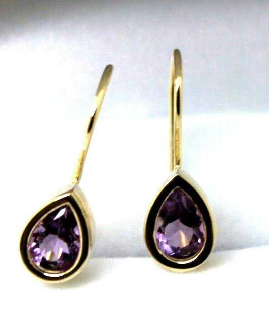 Genuine 9ct Yellow Gold Purple Stone Teardrop Earrings