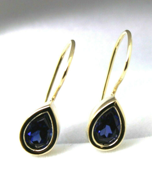 Genuine 9ct Yellow, Rose or White Gold Blue Stone Teardrop Earrings