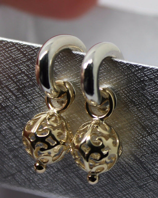 Genuine New 9ct 9k Yellow Gold & Sterling Silver Filigree Ball Stud Earrings