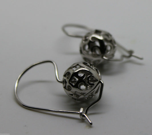 Genuine 9ct 9k 375 White Gold 12mm Ball Drop Filigree Earrings