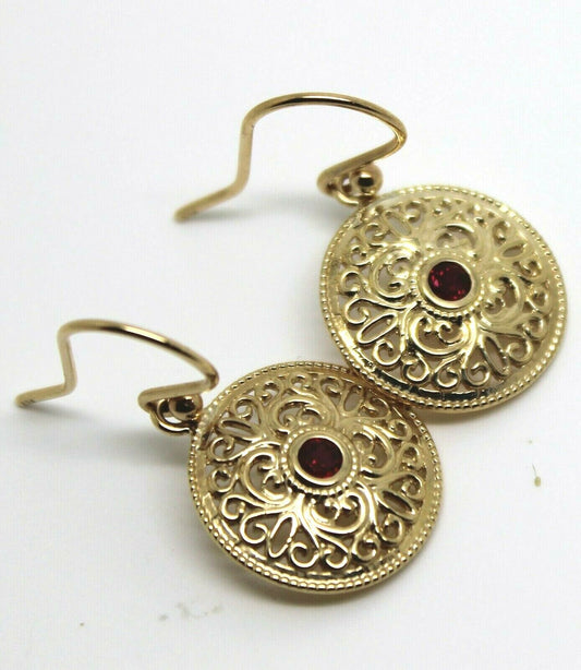 Genuine 9k 9ct Solid Yellow, Rose or White Gold Antique Ruby Filigree Drop Earrings