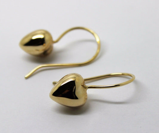 Genuine 9ct Solid Yellow, Rose and White Gold Large Hooks Dangle Puffed Heart Earrings