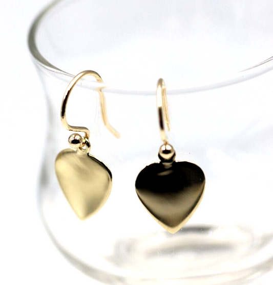 Genuine 9ct 9k Disc Yellow, Rose or White Gold Hook Dangle Heart Earrings