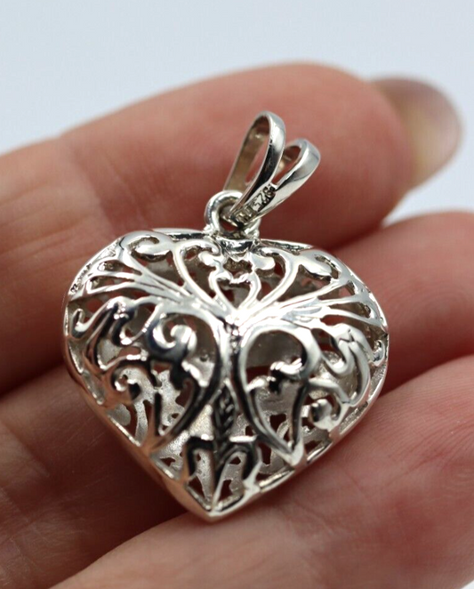 Genuine Sterling Silver 925 Filigree Heart Pendant